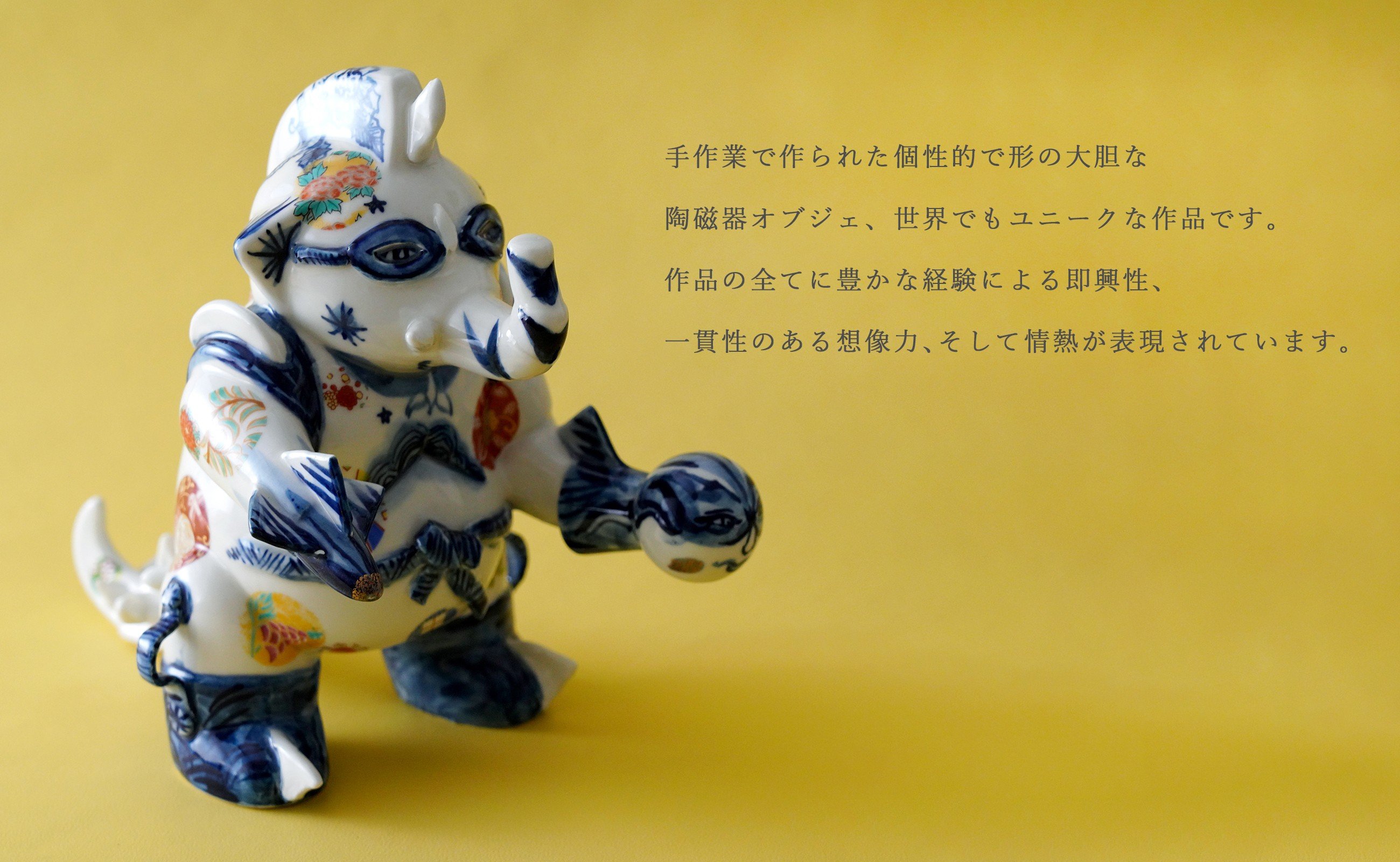 - 有田焼 メガチャジラ 花紋 オブジェ SHIN KOYAMA【ギャラリーシン】 オブジェ 1点モノ 70万円 A700-34