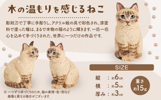 手づくり木彫りお座りねこ【シャム(縞模様)】