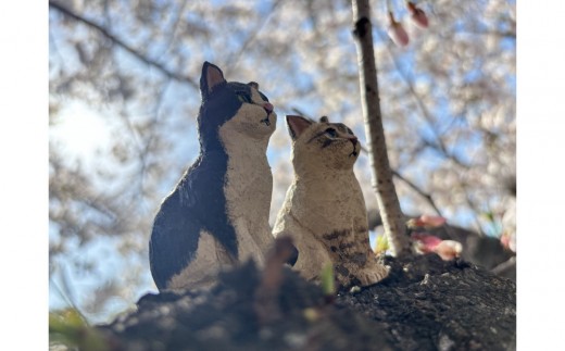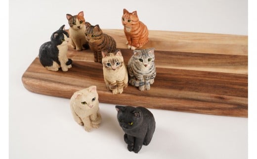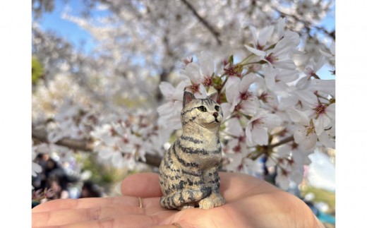 - 手づくり木彫りお座りねこ【シャム(縞模様)】