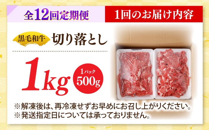 - 【12回定期便】国産 黒毛和牛 熟成肉 切り落とし計1kg(500g×2パック)/ 小分け 国産牛 お肉 牛肉 切落し 冷凍 焼肉 すき焼き / 南島原市 / ふるさと企画[SBA097]