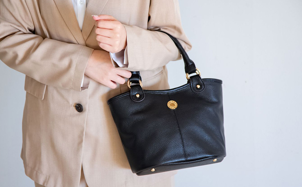 豊岡工房 牛革 手提げ(4259)黒 / ミニ トートバッグ 手提げバッグ コロンとした バケツ型 底鋲 マグホック付き 柔らかい シュリンク牛革 メンズ レディース かばん カバン バッグ 鞄 国産 日本製 小田清株式会社