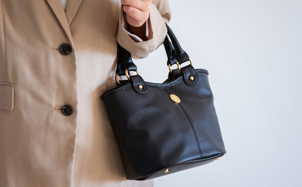 - 豊岡工房 牛革 手提げ(4259)黒 / ミニ トートバッグ 手提げバッグ コロンとした バケツ型 底鋲 マグホック付き 柔らかい シュリンク牛革 メンズ レディース かばん カバン バッグ 鞄 国産 日本製 小田清株式会社