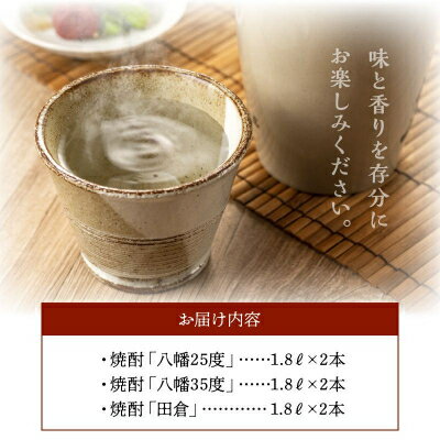 【ふるさと納税】焼酎「八幡25度」1.8L×2本・焼酎「八幡35度」1.8L×2本・焼酎「田倉」1.8L×2本【1186078】