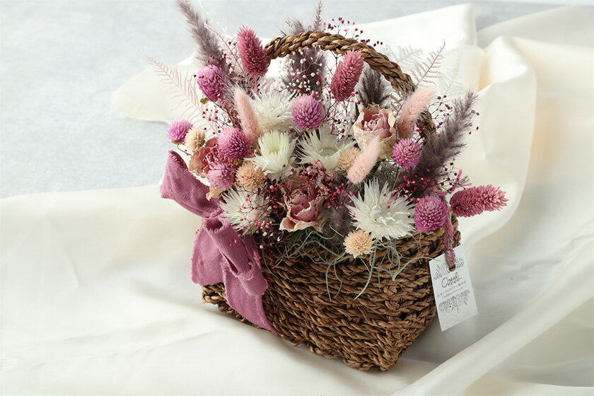 【ふるさと納税】バスケットアレンジ Mサイズ 縦約25cm×横約25cm×幅約15cm ピンク・赤系 フラワーバスケット ドライフラワー デザインおまかせ フラワーアレンジ インテリア 花 合同会社クリール 《90日以内に出荷予定(土日祝除く)》送料無料 熊本県 菊池市