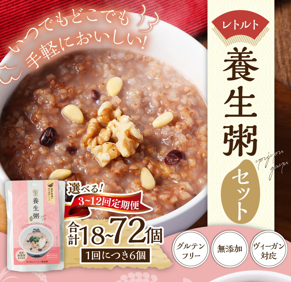 - 【ふるさと納税】レトルト養生粥セット 【選べる定期便:3回/6回/12回】(1回あたり 220g×6個) 有機玄米 お粥 おかゆ 無添加 グルテンフリー ヴィーガン対応 レトルト食品 保存食 長崎県 長崎市 送料無料