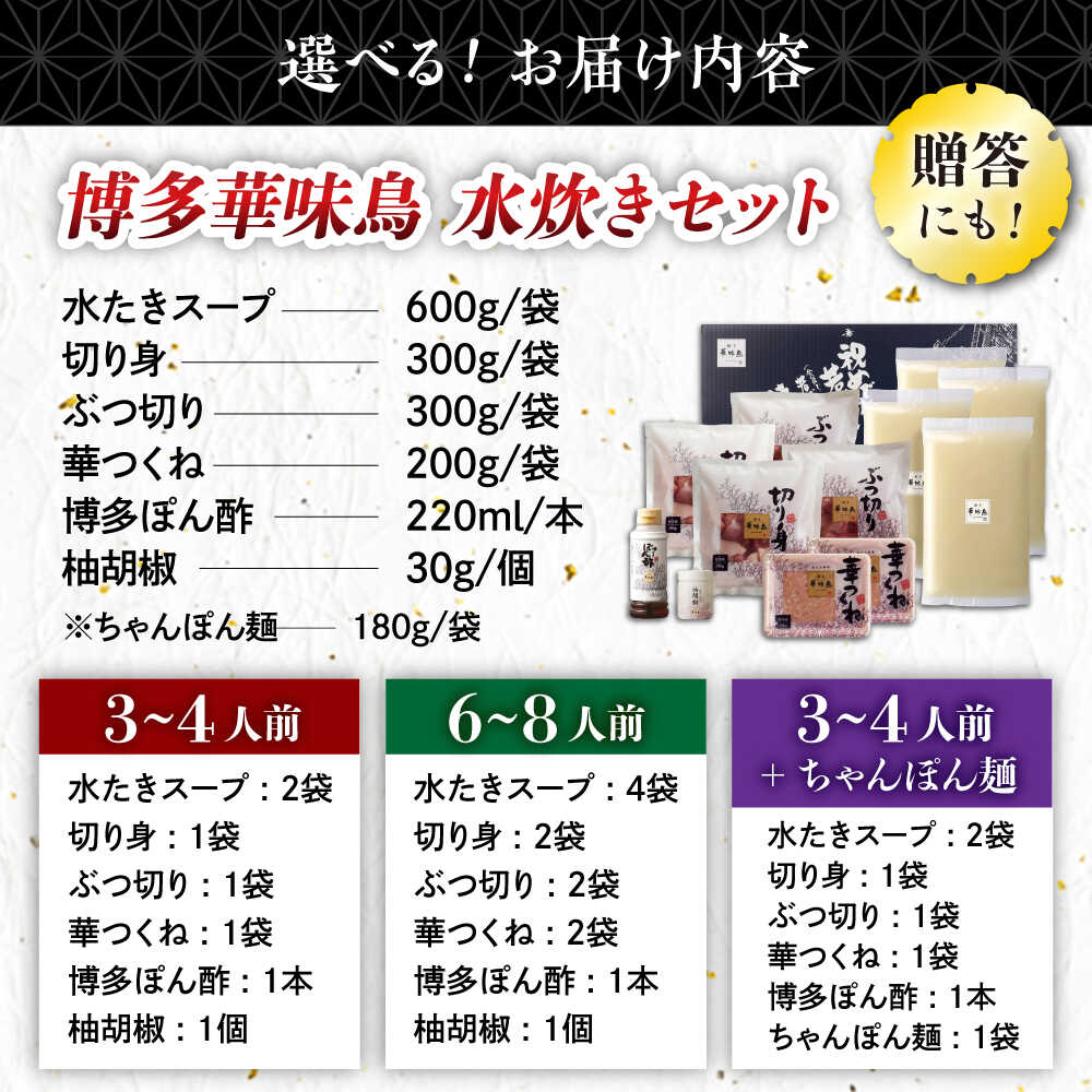 - 【ふるさと納税】水炊き 博多 華味鳥 3〜4人前/6〜8人前ちゃんぽん《豊前市》【トリゼンフーズ】 [VAC001] 福岡 鍋 鶏 水たき みずたき セット