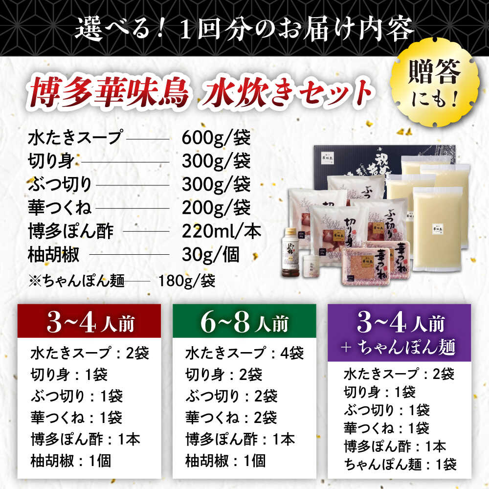 【ふるさと納税】【ふるさと納税】水炊き 博多 華味鳥 3〜4人前/6〜8人前ちゃんぽん 選べるお届け回数《豊前市》【トリゼンフーズ】 [VAC009] 福岡 鍋 鶏 水たき みずたき セット