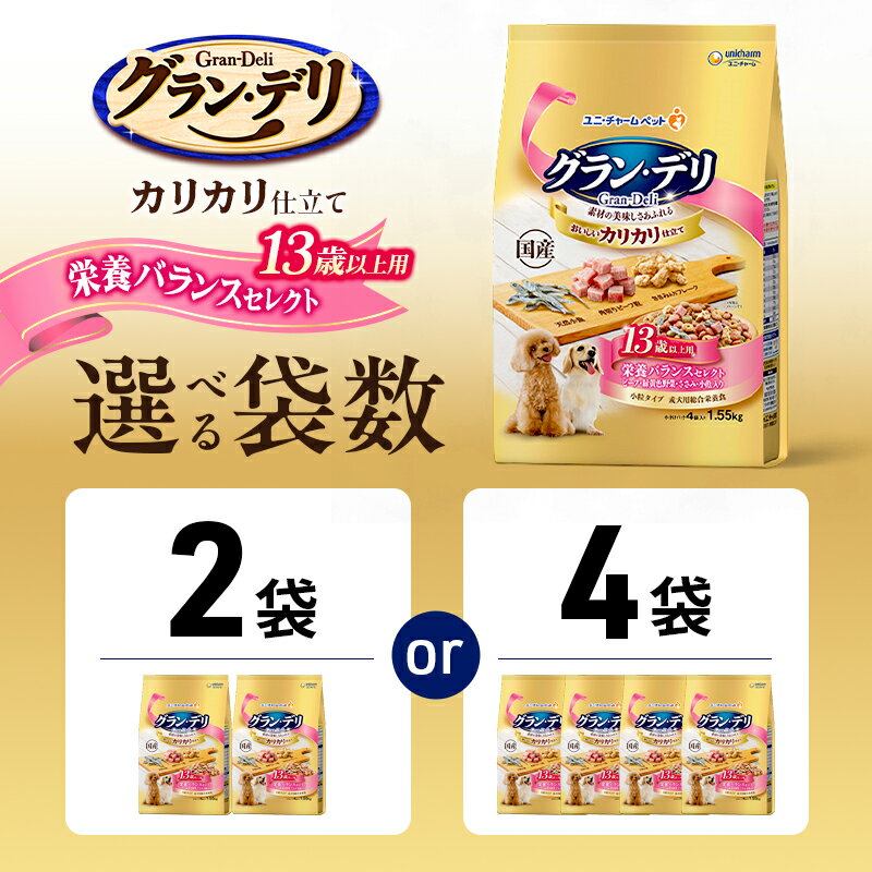 - 【ふるさと納税】グラン・デリ カリカリ仕立て 13歳以上用 栄養バランスセレクト 1.55kg 選べる袋数(2袋/4袋) ペットフード ドッグフード 犬のごはん 犬用フード 犬 ペット ドライ ユニ・チャーム ペット