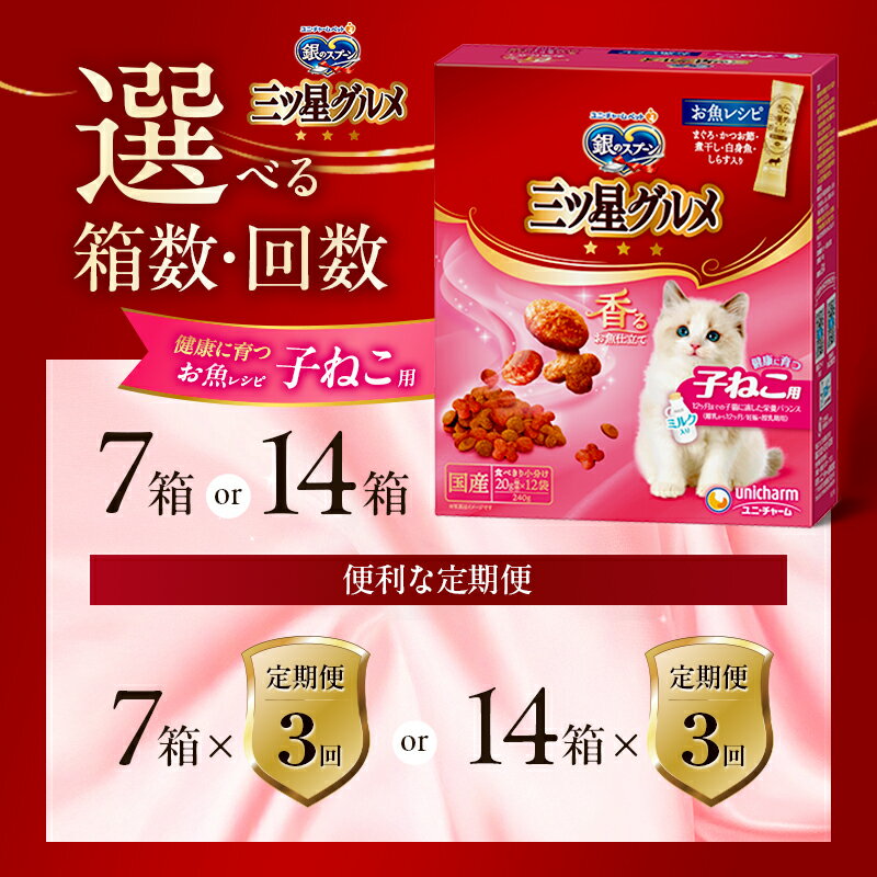 - 【ふるさと納税】銀のスプーン三ツ星グルメ 香るお魚仕立て健康に育つ子ねこ用 お魚レシピ 240g 選べる箱数・回数(7箱/14箱/1回/3回定期便) ペットフード キャットフード 猫のごはん 猫用フード 猫 ペット 小分け 個包装 ドライ ユニ・チャーム ペット