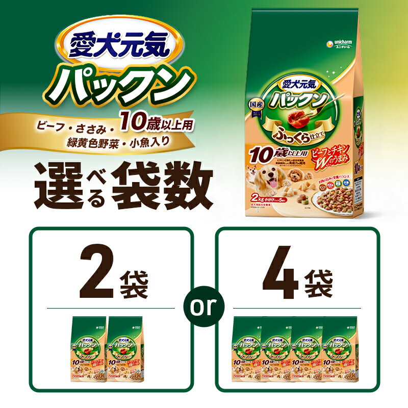 - 【ふるさと納税】愛犬元気パックン 10歳以上用 ビーフ・ささみ・緑黄色野菜・小魚入り 2.0kg 選べる袋数(2袋/4袋) ペットフード ドッグフード 犬のごはん 犬用フード 犬 ペット ソフト ユニ・チャーム ペット