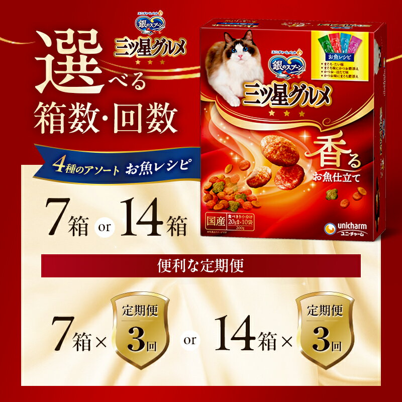 - 【ふるさと納税】銀のスプーン三ツ星グルメ 香るお魚仕立て4種のアソート お魚レシピ 200g 選べる箱数・回数(7箱/14箱/1回/3回定期便) ペットフード キャットフード 猫のごはん 猫用フード 猫 ペット 小分け 個包装 ドライ ユニ・チャーム ペット