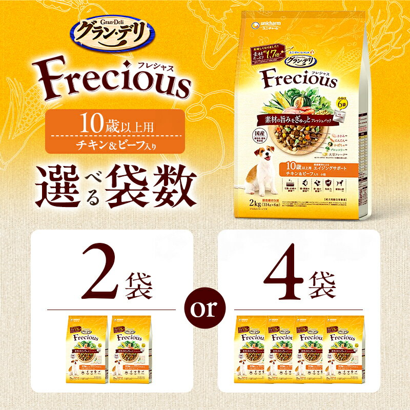 - 【ふるさと納税】グラン・デリ フレシャス 10歳以上用 チキン&ビーフ入り 2kg 選べる袋数(2袋/4袋) ペットフード ドッグフード 犬のごはん 犬用フード 犬 ペット ドライ ユニ・チャーム ペット