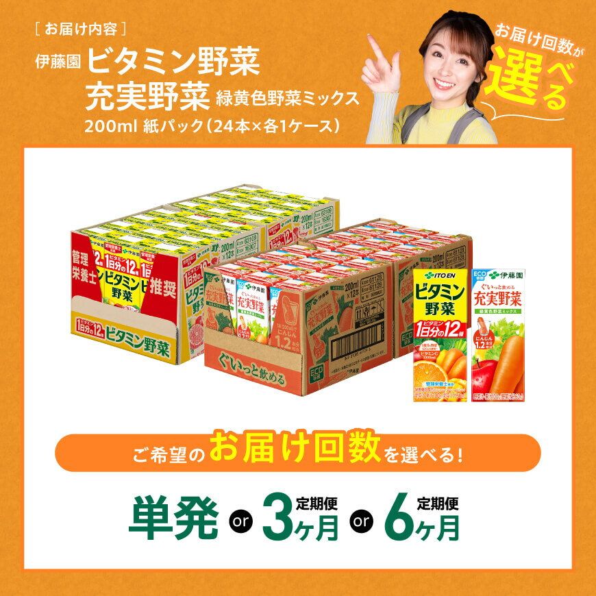 - 【ふるさと納税】※回数が選べる※ 伊藤園 ビタミン野菜&緑黄色野菜 計48本(各24本) - 伊藤園 飲料類 野菜 緑黄色野菜 ビタミン野菜 ジュース セット 詰め合わせ 飲みもの