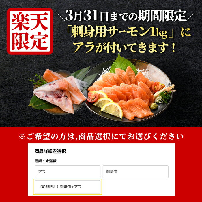 【ふるさと納税】楽天限定 食品添加物不使用 サーモン 国産 ワンフローズン 富士山【冷凍】<選べる内容量> 500g 〜 2kg アトランティック サーモン ポーション アラ 刺身 さしみ 冷凍 小分け サーモン丼 たたき 5000円以内 限定【期間限定アラ付き!2026年3月31日まで】