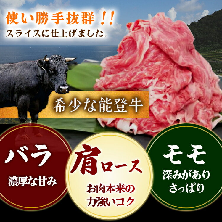 【ふるさと納税】\選べる内容量/石川県産 能登牛特選スライス(切り落とし)|牛肉 A4 A5等級 切り落とし 国産 牛肩 モモ バラ 600g 1kg スライス A5ランク 和牛 冷凍 冷凍配送 国産 牛丼 肉じゃが すき焼き しゃぶしゃぶ 鍋 七尾市