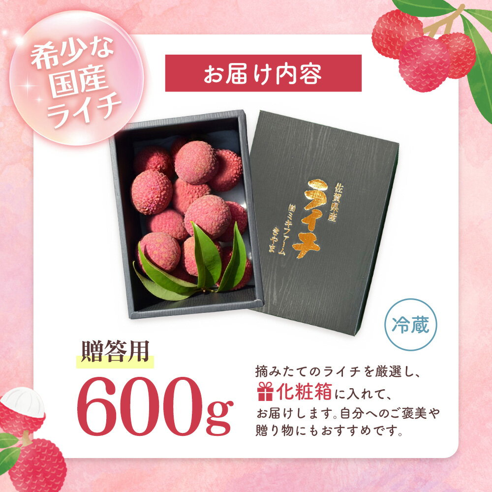 【ふるさと納税】【先行受付】佐賀県産ライチ 600g(贈答用)【生ライチ ライチ 生 基山町産 贈答用 貴重 国産 新鮮 フレッシュ 肉厚 600g お中元 贈り物】K060011