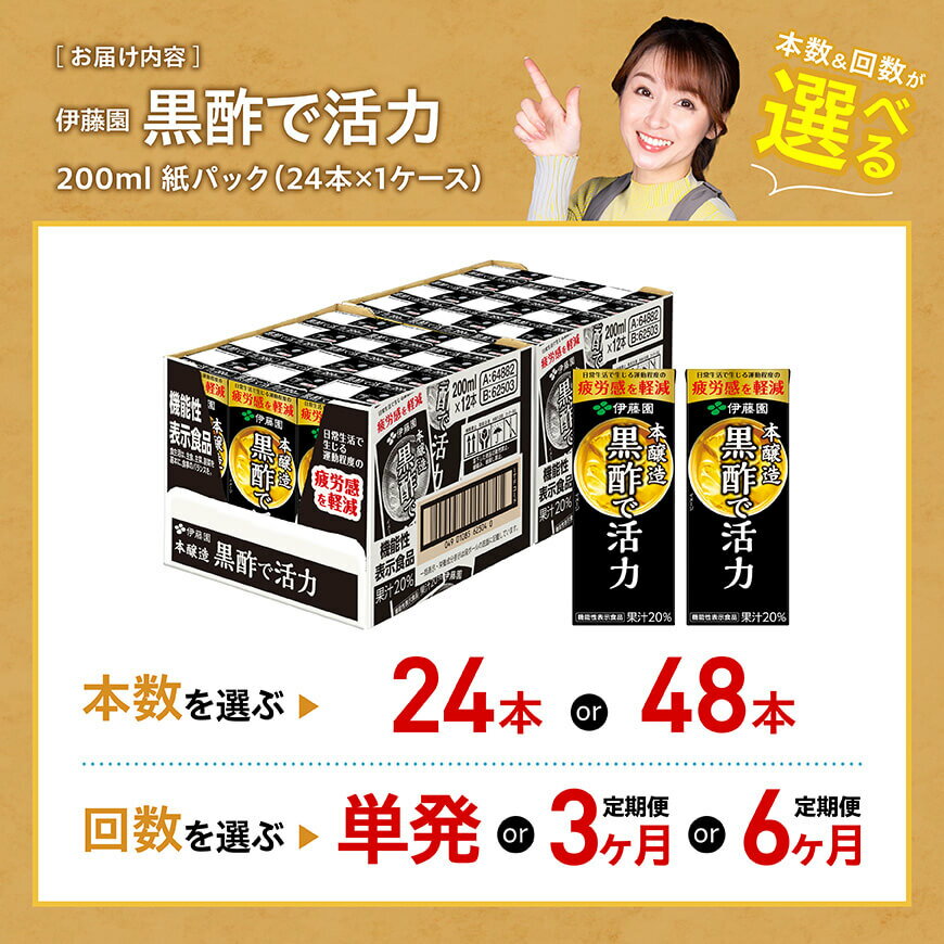 【ふるさと納税】※本数・回数が選べる※伊藤園 機能性表示食品 黒酢で活力 紙パック200ml - 飲料類 ソフトドリンク ドリンク 黒酢 ジュース 飲みもの 行事 イベント レジャー キャンプ アウトドア 差し入れ プレゼント お届け 送料無料 宮崎県 川南町