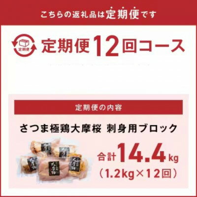 【ふるさと納税】【毎月定期便】さつま極鶏大摩桜 刺身用ブロック全12回【配送不可地域:離島】【4082822】