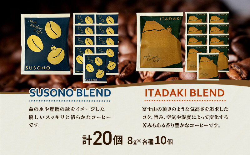 【ふるさと納税】ワンタッチドリップコーヒー 「SUSONO BLEND」 「ITADAKI BLEND」 2種 20個セット コーヒー 粉 珈琲 ブレンド ドリップバッグ オフィス キャンプ 飲み比べ セット 静岡県 裾野市