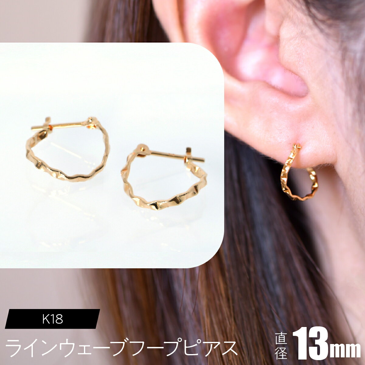 【ふるさと納税】K18 ラインウェーブフープピアス【えらべるサイズ】SWCA038 ふるさと納税 K18 18金 ピアス フープピアス ジュエリー 昭和町 山梨県 送料無料