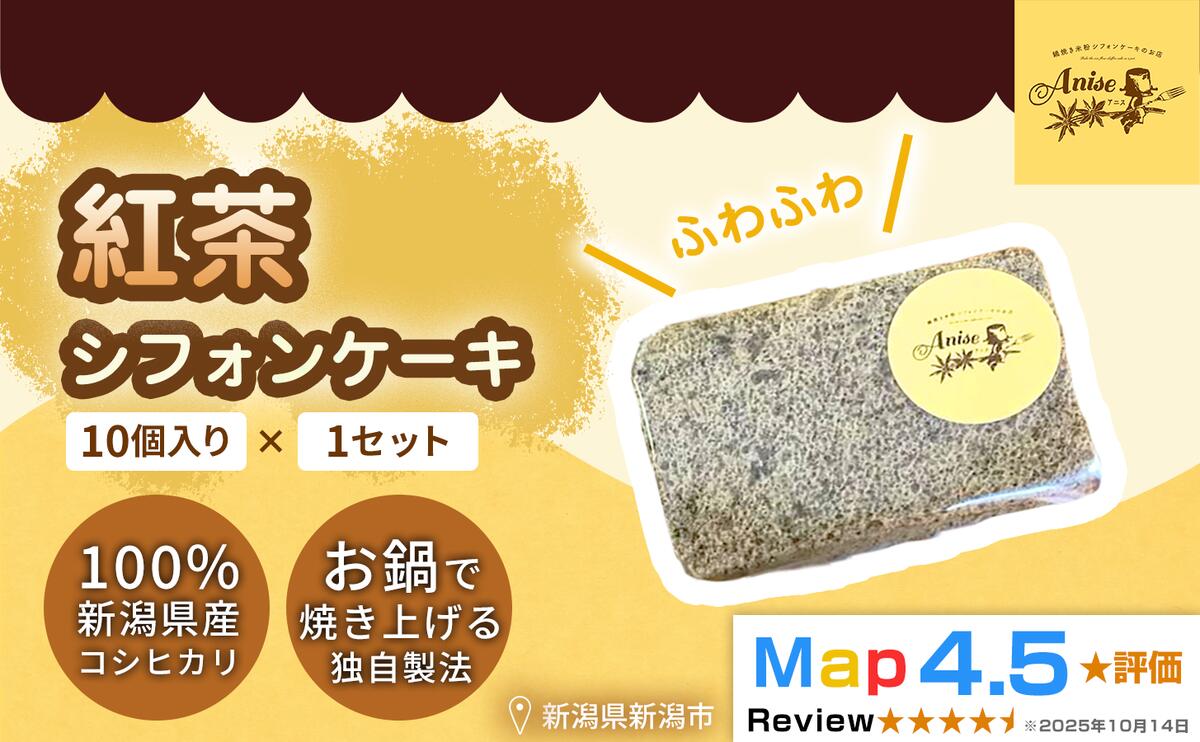 - 【ふるさと納税】【新潟県産米粉100%使用】シフォンケーキ 紅茶 1セット(10個) | 鍋焼き グルテンフリー 健康 ヘルシー 焼き菓子 お菓子 スイーツ ギフト 贈り物 新潟市