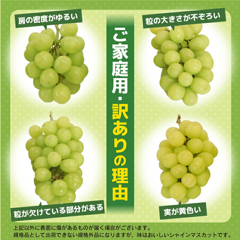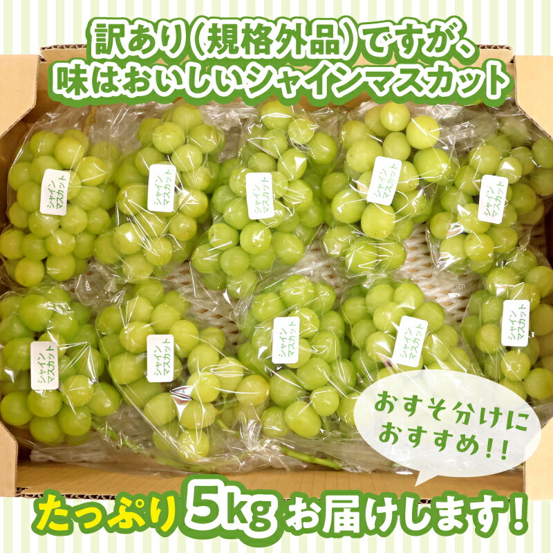 - 【ふるさと納税】【先行予約】 《ご家庭用》令和8年産 訳ありシャインマスカット たっぷり5kg (8〜12房)山形県産 2026年産 【2026年9月上旬頃〜10月中旬頃発送予定】※配送不可 沖縄・離島果物 ぶどう 葡萄 フルーツ ブドウ 種なし 産地直送 国産 ふるさと納税