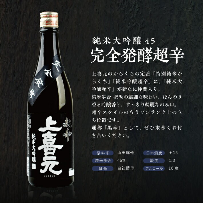 - 【ふるさと納税】上喜元 純米大吟醸45 完全発酵超辛 720ml×1本 純米大吟醸酒 酒田酒造 東北 山形県 酒田市 庄内 酒 お酒 日本酒