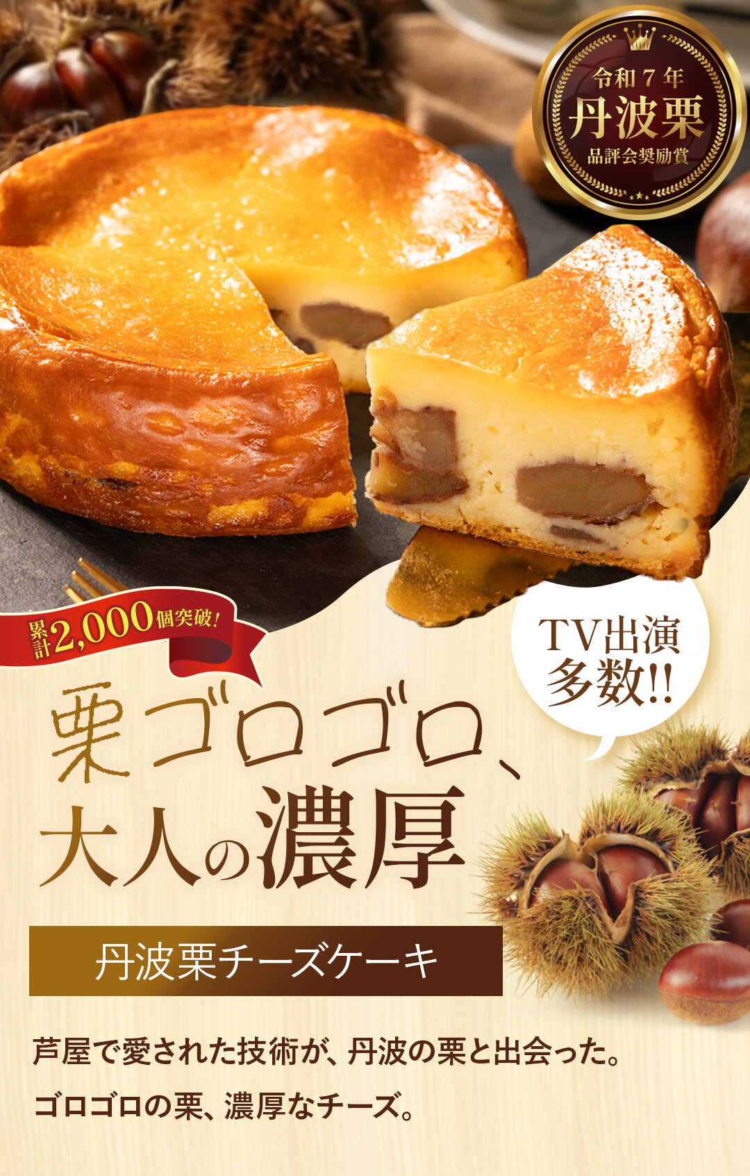 - 【ふるさと納税】〈累計2000本突破〉丹波栗チーズケーキ 4号サイズ 冷凍〈TV出演多数〉丹波栗ゴロゴロたっぷり 濃厚 チーズ ケーキ 厳選素材 スイーツ ギフト お取り寄せ 贈り物 デザート 兵庫県丹波篠山市 栗 和栗 モンブラン
