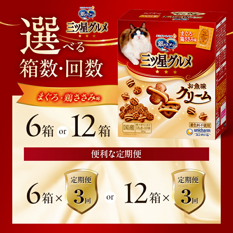 【ふるさと納税】銀のスプーン三ツ星グルメ お魚クリームまぐろ・鶏ささみ味 180g 選べる箱数・回数(6箱/12箱/1回/3回定期便) ペットフード キャットフード 猫のごはん 猫用フード 猫 ペット 小分け 個包装 ドライ ユニ・チャーム ペット
