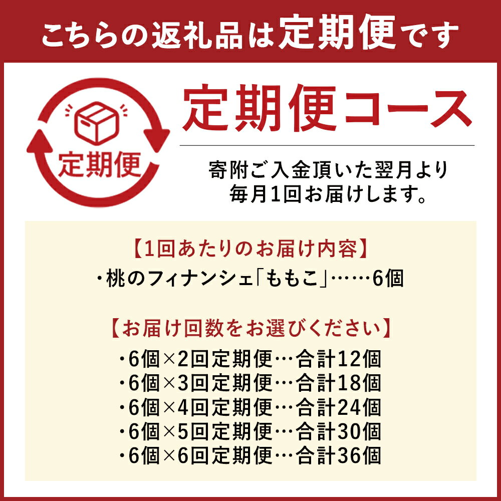 - 【ふるさと納税】桃のフィナンシェ「ももこ」 1回あたり計約300g(約50g×6個)<選べる定期便> 1ヶ月毎 2回 / 3回 / 4回 / 5回 / 6回 フィナンシェ 米粉 桃 もも モモ スイーツ デザート お菓子 洋菓子 焼き菓子 おやつ フルーツ くだもの 冷蔵 岡山県 倉敷市 送料無料