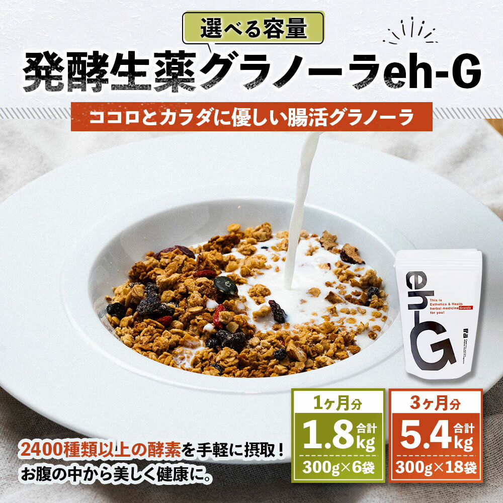- 【ふるさと納税】<選べる内容量>発酵生薬グラノーラeh-G 1ヶ月分 計1.8kg(300g×6袋) / 3ヶ月分 計5.4kg(300g×18袋) 自家製グラノーラ オーガニック オートミール ナッツ ドライフルーツ 麹 酵素 腸活 お腹 朝食 おやつ 健康 美容 山梨県 中央市 送料無料