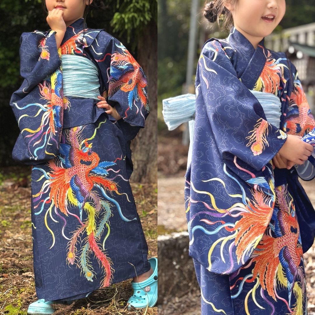 - 【ふるさと納税】[KUTANI×KIMONO] キッズ浴衣 帯 2点セット 鳳凰 (選べるサイズ:110-120cm/130-140cm) 浴衣 服 ギフト 石川県 小松市 032018【デクシオーラ株式会社】