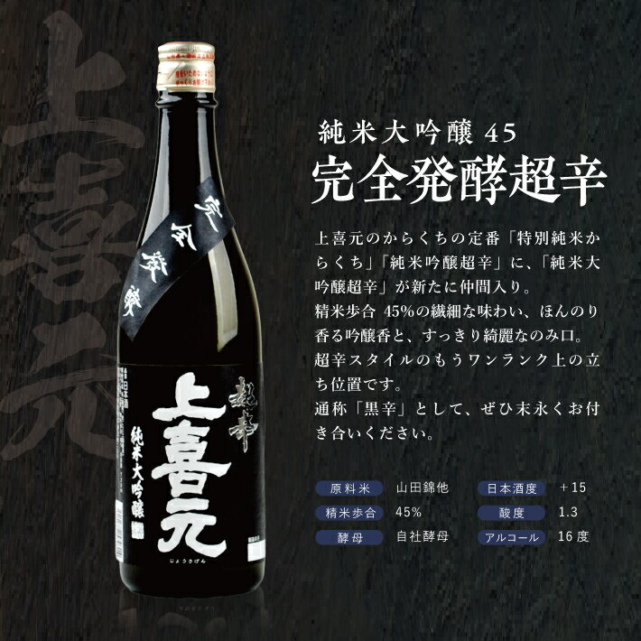 【ふるさと納税】上喜元 純米大吟醸45 完全発酵超辛・上喜元 純米吟醸 超辛完全発酵 720ml×2本 上喜元 完全発酵超辛口酒720ml飲み比べセット 純米大吟醸 純米吟醸 日本酒 お酒 飲み比べ セット 山田錦 五百万石 酒田酒造