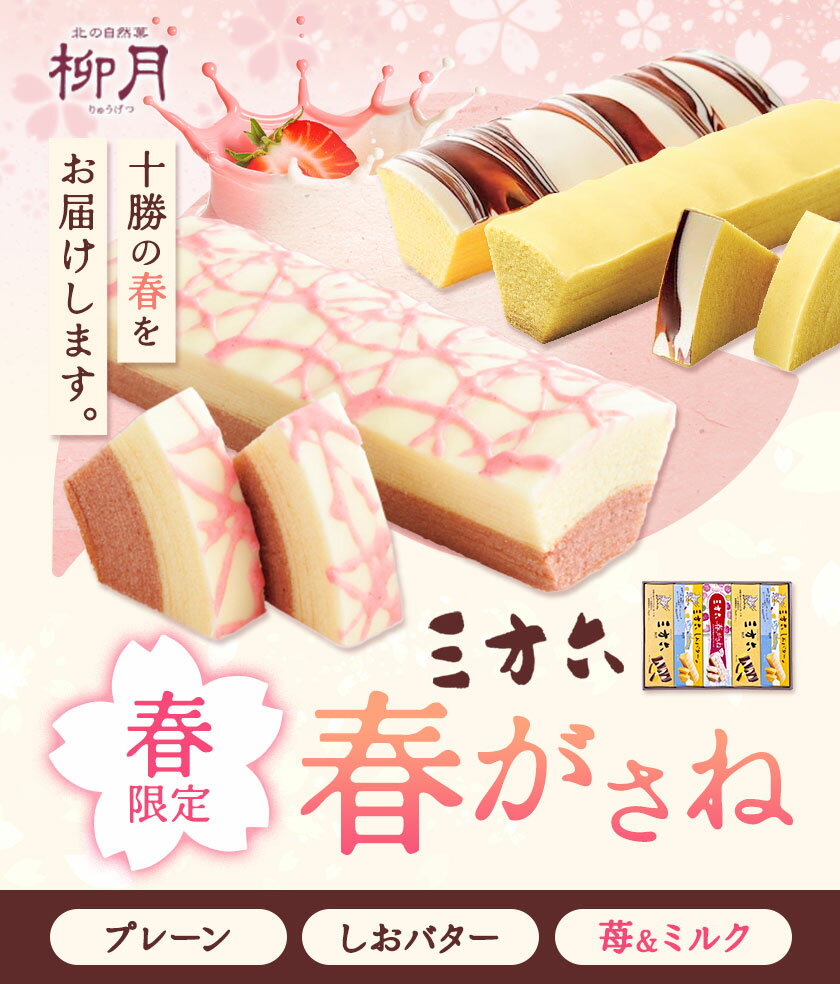 - 【ふるさと納税】十勝スイーツ 柳月「三方六」詰合せ 春がさね( さわやか 苺 & ミルクリッチ ) プレーン 塩バター 選べる 計3本 計5本 計6本 本別町観光協会 《30日以内に出荷予定(土日祝除く)》 北海道 本別町 十勝 セット バウムクーヘン バームクーヘン 贈り物 ギフト