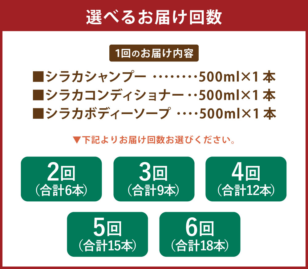 【ふるさと納税】<選べる定期便>シラカシャンプー・コンディショナー・ボディーソープセット 1回あたり1セット 1本500ml 各 1ヶ月毎 2~6回 ボディソープ ボディウォッシュ ヘアケア ダメージケア 頭皮ケア 保湿 乾燥 髪 くせ毛 うねり バス用品 北海道 蘭越町 送料無料