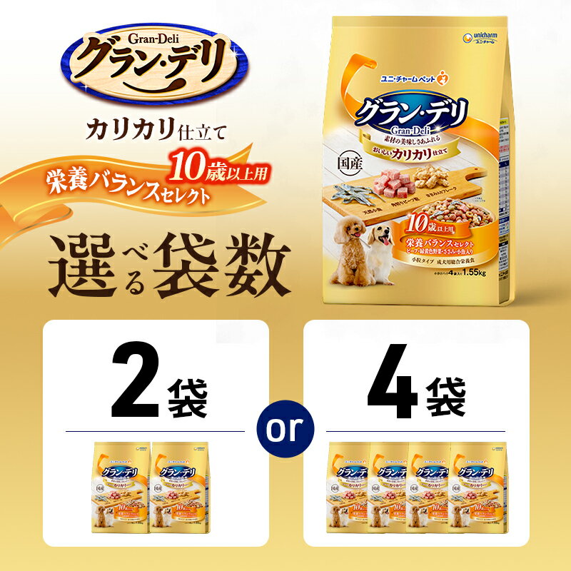 - 【ふるさと納税】グラン・デリ カリカリ仕立て 10歳以上用 栄養バランスセレクト 1.55kg 選べる袋数(2袋/4袋) ペットフード ドッグフード 犬のごはん 犬用フード 犬 ペット ドライ ユニ・チャーム ペット