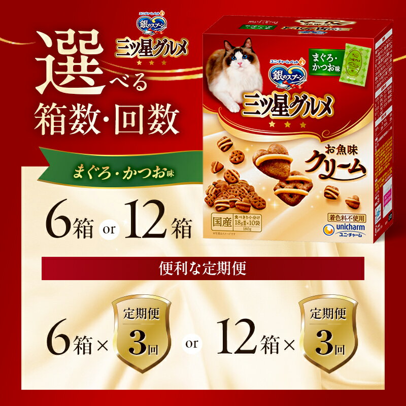 【ふるさと納税】銀のスプーン三ツ星グルメ お魚クリームまぐろ・かつお味 180g 選べる箱数・回数(6箱/12箱/1回/3回定期便) ペットフード キャットフード 猫のごはん 猫用フード 猫 ペット 小分け 個包装 ドライ ユニ・チャーム ペット