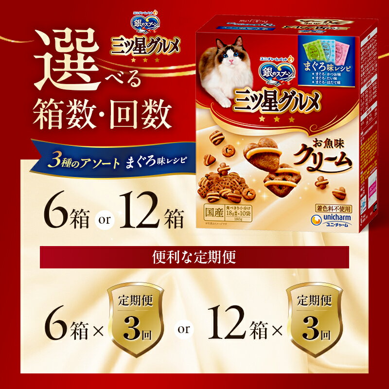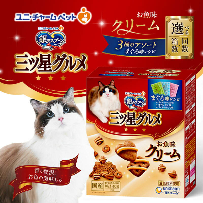 - 【ふるさと納税】銀のスプーン三ツ星グルメ お魚クリームまぐろ味レシピ3種のアソート 180g 選べる箱数・回数(6箱/12箱/1回/3回定期便) ペットフード キャットフード 猫のごはん 猫用フード 猫 ペット 小分け 個包装 ドライ ユニ・チャーム ペット