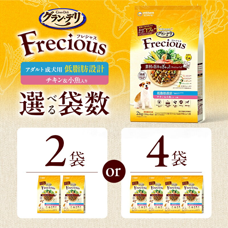 - 【ふるさと納税】グラン・デリ フレシャス アダルト成犬用 低脂肪設計 チキン&小魚入り 2kg 選べる袋数(2袋/4袋) ペットフード ドッグフード 犬のごはん 犬用フード 犬 ペット ドライ ユニ・チャーム ペット