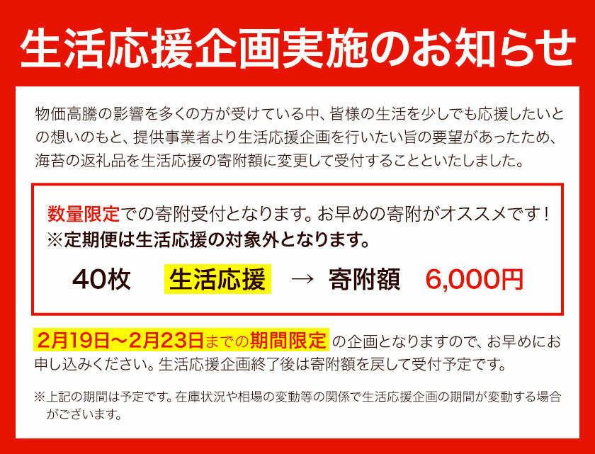 - 【ふるさと納税】 <寄附額見直し中> 海苔 訳あり 一番摘み 海苔 40枚 有明海産 全形 40枚入り 小分け チャック 初摘み 定期便 選べる 長洲町 わけあり おにぎり おにぎらず 手巻き 寿司 恵方巻 節分 くまもん リピート《60日以内に出荷予定(土日祝除く)》