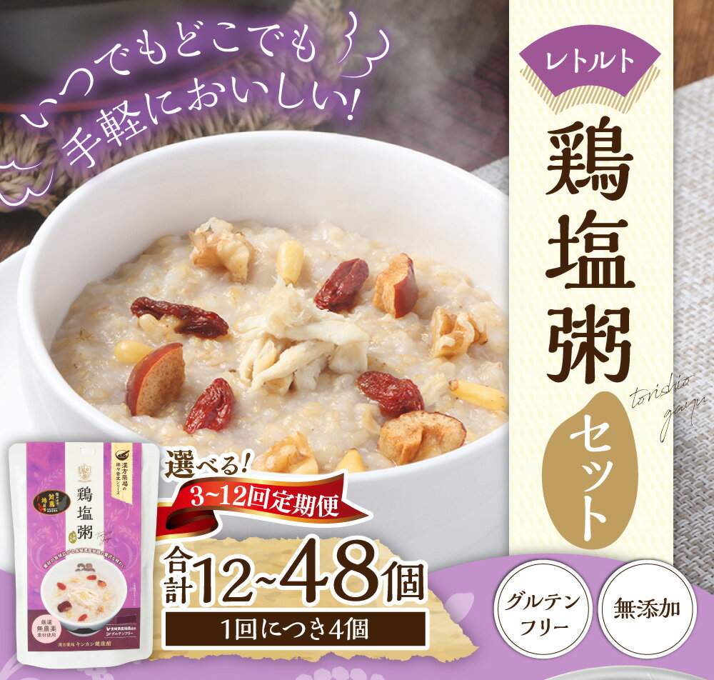 - 【ふるさと納税】レトルト 鶏塩粥セット 【選べる定期便:3回/6回/12回】(1回あたり:230g×4個) 長崎県産地鶏 有機玄米 グルテンフリー 米 お米 無添加 粥 おかゆ 保存食 長期保存 栄養 手軽 防災食 レトルト 長崎 九州 国産 常温 長崎県 長崎市 送料無料