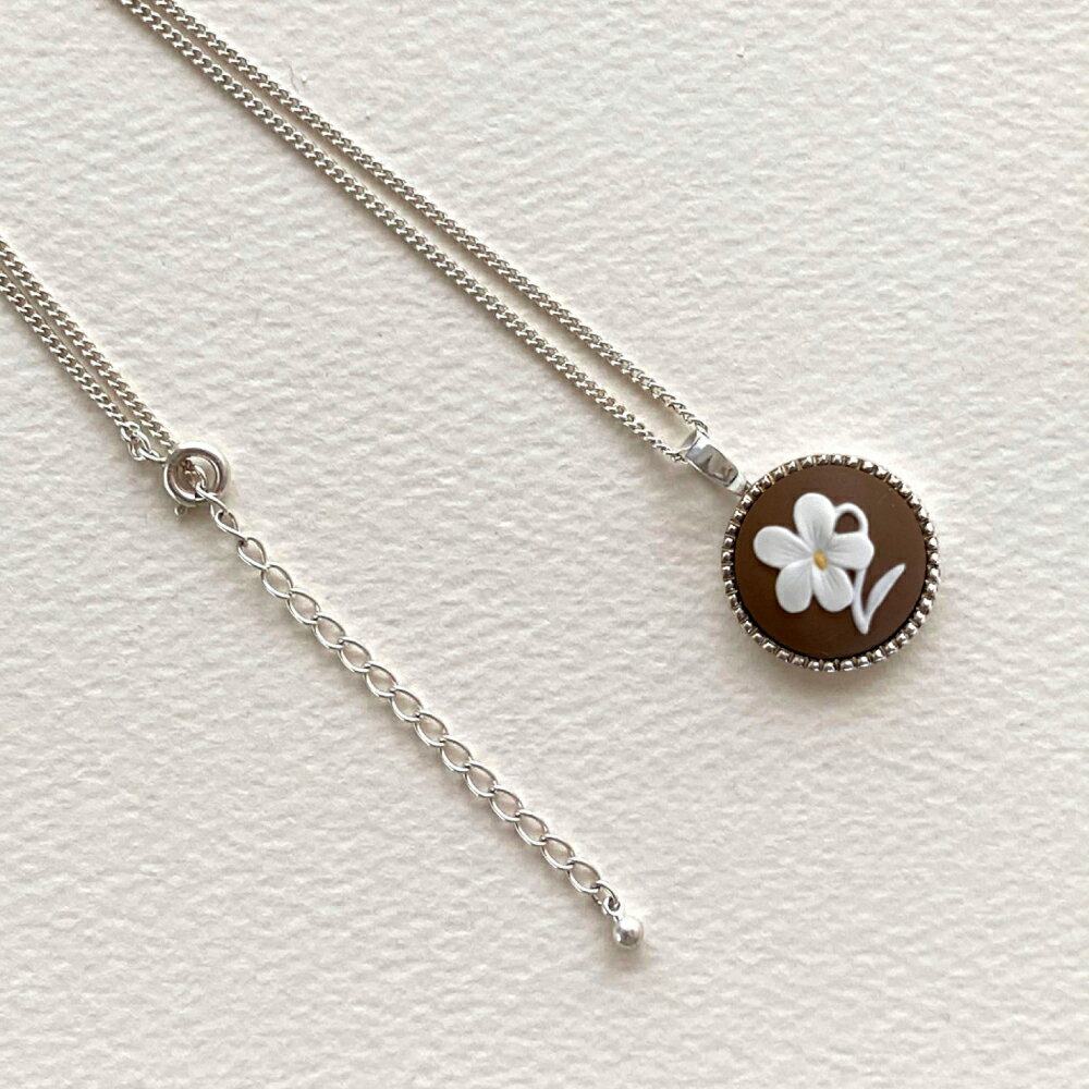 【ふるさと納税】<ROUND>スミレシルバーペンダント ブラウン/ アクセサリー 装飾品 ブローチ ペンダント カメオ アンティーク レトロ / 瀬戸市 / 陶華[BBCD004]