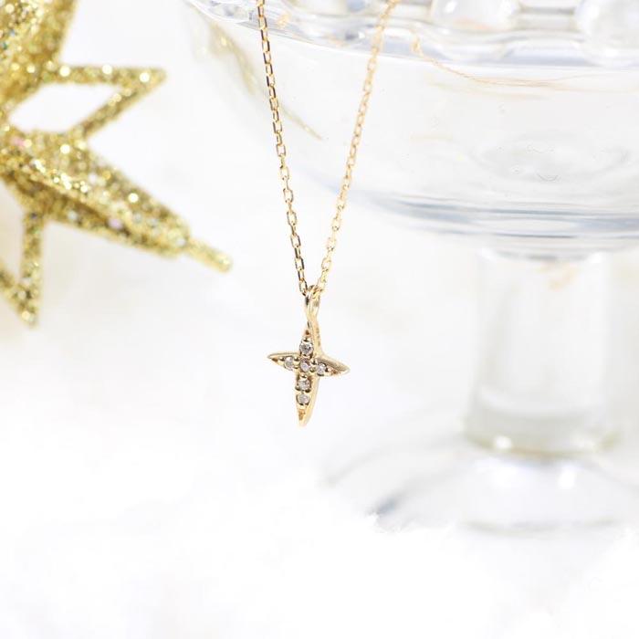 【ふるさと納税】【K10イエローゴールドネックレス】存在感バツグン ダイヤモンド0.033ctの十字星 長さ40cm KN01008 / 金 ゴールド ダイヤ ジュエリー アクセサリー ギフト プレゼント レディース シンプル 定番