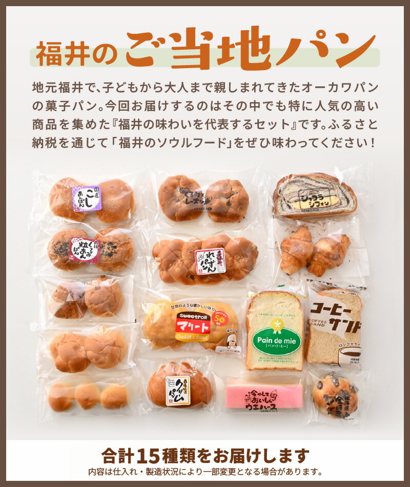- 【ふるさと納税】 福井の味 オーカワパン 定番人気 パン 15種セット 【冷凍 菓子パン 詰め合わせ 朝食 おやつ 冷凍パン 人気 お子様 おすすめ ご当地】