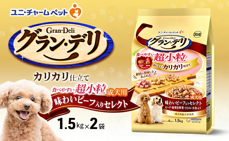 - 【ふるさと納税】グラン・デリ カリカリ仕立て 成犬用 食べやすい 超小粒 1.5kg 選べる袋数(2袋/4袋) ペットフード ドッグフード 犬のごはん 犬用フード 犬 ペット ソフト ユニ・チャーム ペット