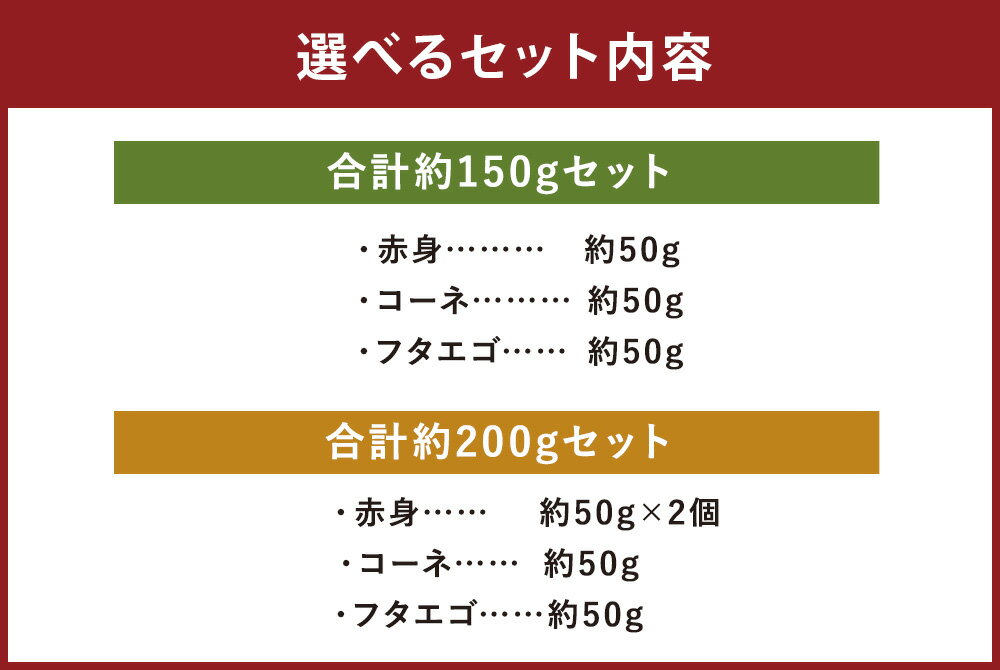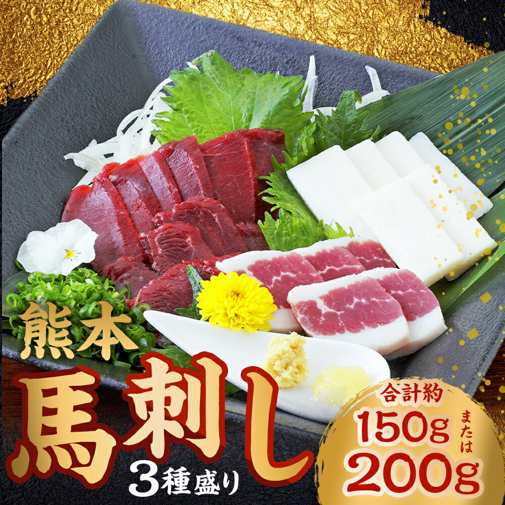 - 【ふるさと納税】<選べる内容量>熊本 馬刺し 3種盛り 赤身・コーネ・フタエゴ 計約150g / 計約200g 馬刺 馬肉 お肉 セット 詰め合わせ 低カロリー 低脂質 冷凍 熊本県 あさぎり町 送料無料