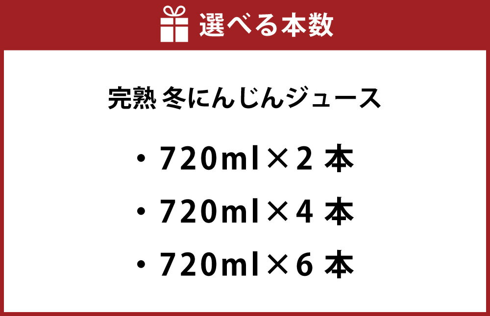 【ふるさと納税】完熟 冬にんじんジュース 720ml (2本(計1440ml) / 4本(計2880ml) / 6本(計4320ml)) <選べる容量> 【2026年2月上旬~8月下旬迄発送予定】 人参 にんじん ニンジン ジュース 飲料 野菜飲料 野菜ジュース 果汁飲料 常温 高知県 香美市 送料無料