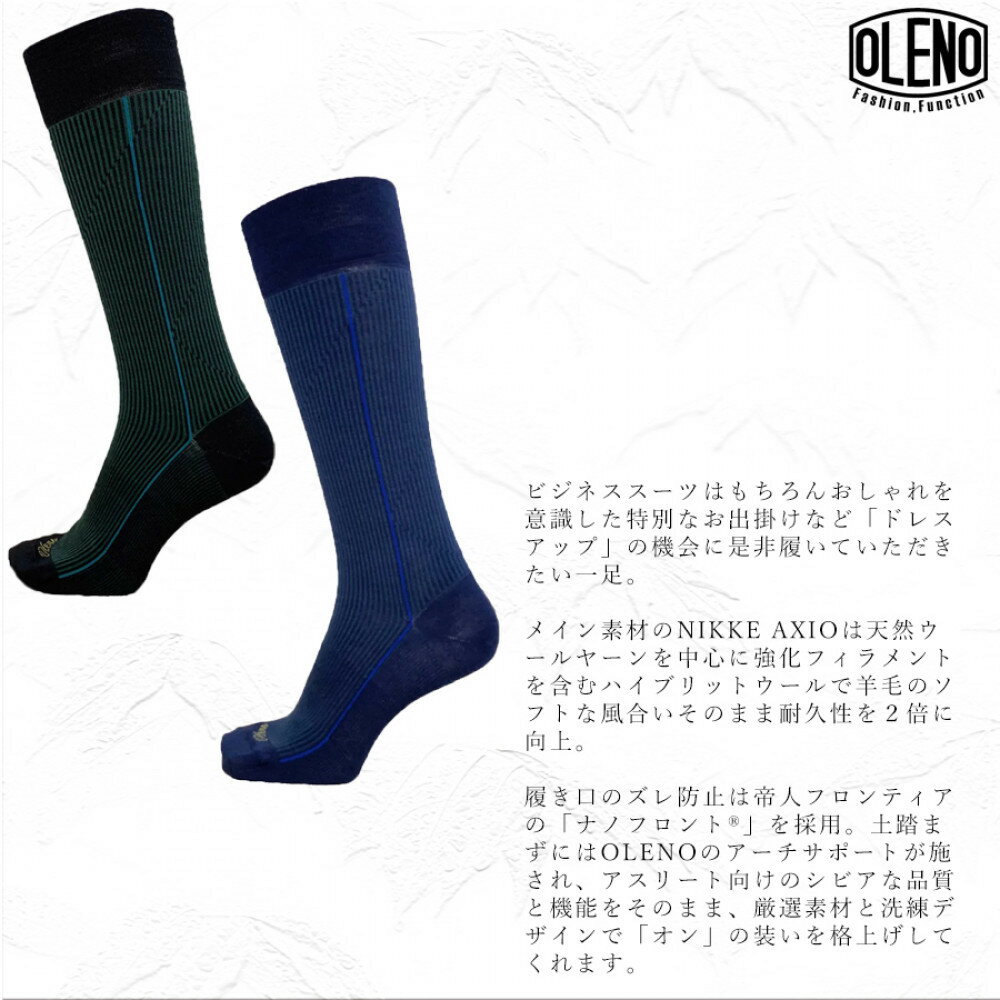 - 【ふるさと納税】OLENO DRESS SOCKS 「NOBLE ソックス」 2足セット 26~28cm オリジナルバック付(ストライプ/ネイビー ストライプ/グリーン)///ビジネス スーツ オフィス おしゃれ 紳士 メンズ 男性 靴下くつした 足元 日本製 奈良県 広陵町