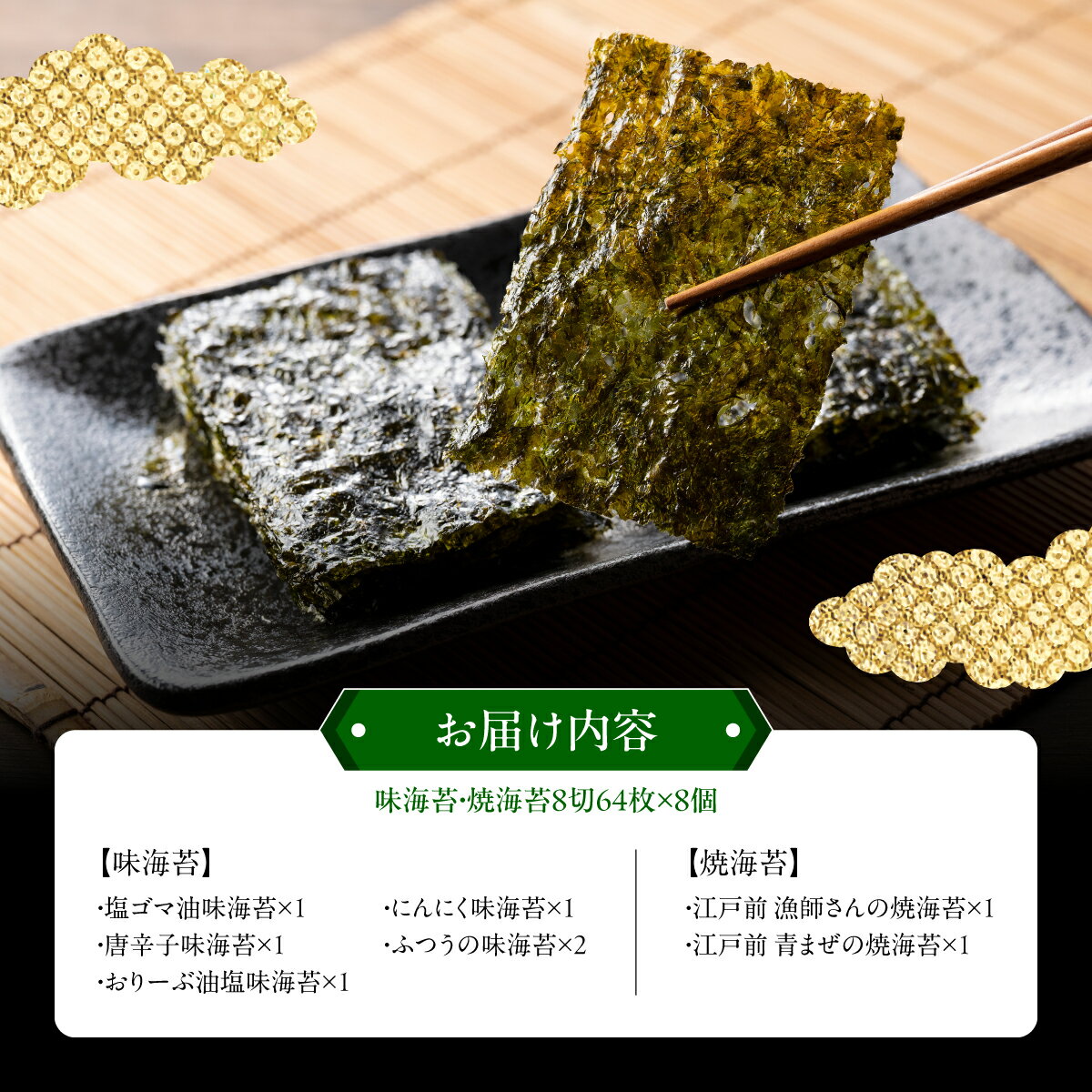 - 【ふるさと納税】 罪悪感ゼロのおつまみ味海苔5種・焼海苔2種合計7種 8個入512枚セット ふるさと納税 海苔 のり 千葉県 木更津 送料無料 KO011