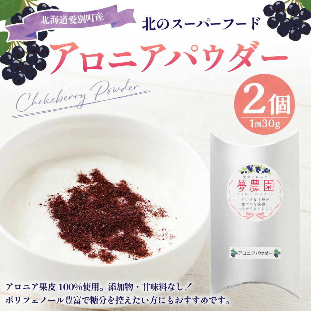 【ふるさと納税】アロニアパウダー 計60g(30g×2) アロニア果皮100%使用 添加物・甘味料なし ポリフェノール 調味料 混ぜパン お菓子作り ドレッシング ソース作り 料理 北海道産 国産 北海道 愛別町 送料無料